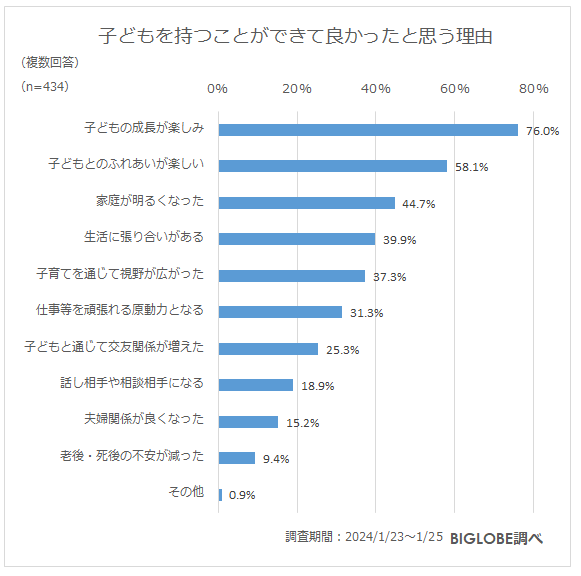 BIGLOBEが未就学児~高校生の親に聞いた「子育てに関する意識調査」を発表 「子どもがいることで幸福度が高まった」約9割BIGLOBEが未就学児~高校生の親に聞いた「子育てに関する意識調査」を発表 - ニュース - ビッグローブ株式会社BIGLOBEは全国の20代から50代で子ども(未就学児~高校生)がいる男女500人を対象に「子育てに関する意識調査」を実施しました。2024年3月27日、調査結果を発表します。